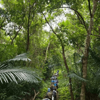 在泰雅族獵徑旁溪水玩,抓魚抓蝦 、玩漂漂河、蓋冷泡池⋯ 午餐在溪邊廟旁,自煮野炊,吃得不亦樂乎,補充物質身健康能量。